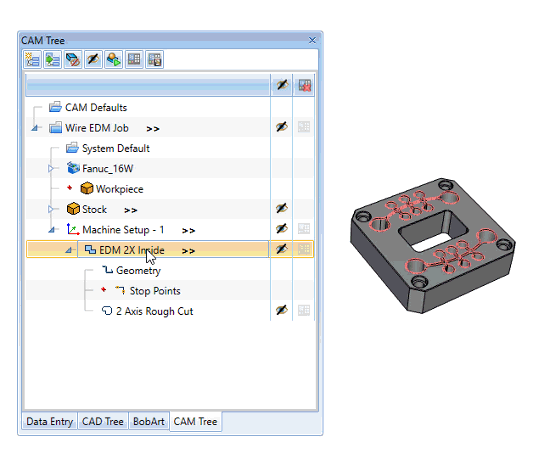 New workflow improves productivity, providing a better user experience for optimizing Shape Cutting Cycles for 2 & 4 Axis Wire EDM toolpath creation. Post and run faster with V34s new and improved CAM Tree navigation and workflow.