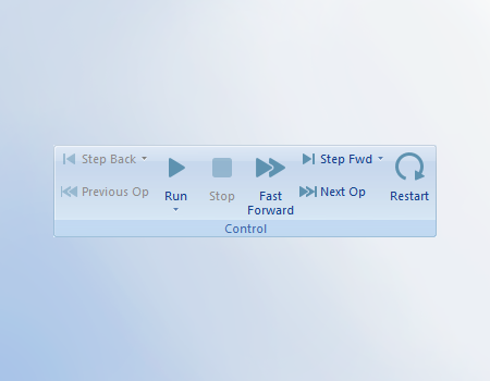 Play your toolpath simulation with the same controls as watching a DVD movie. Run, Stop, Fast Forward, step forward, Jump to the next operation, Step back, Jump to previous operation and restart; putting you in full control of your toolpath and machine simulations.