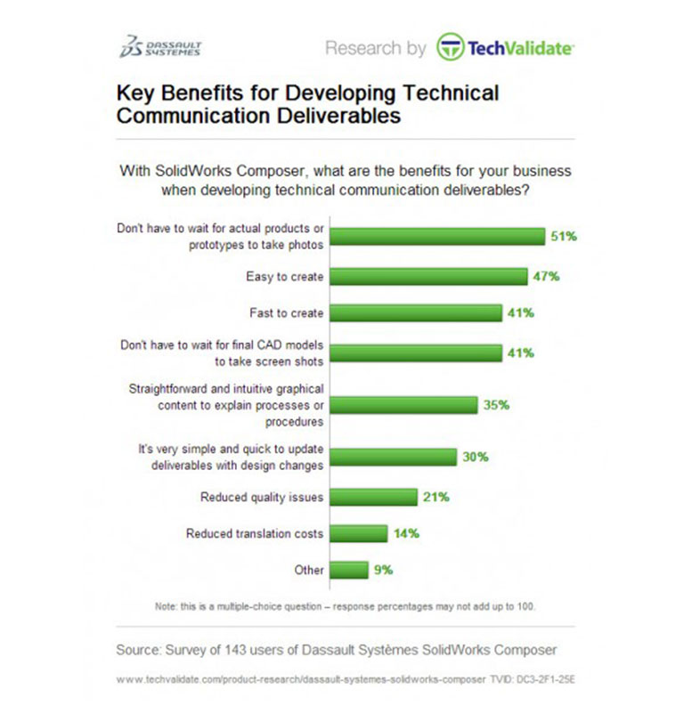 Marketing collateral You no longer need to compromise your communications by relying on rough drawings to show your concepts or waiting until your design is finished to start creating product communication deliverables. With SOLIDWORKS Composer, you can quickly and easily create: